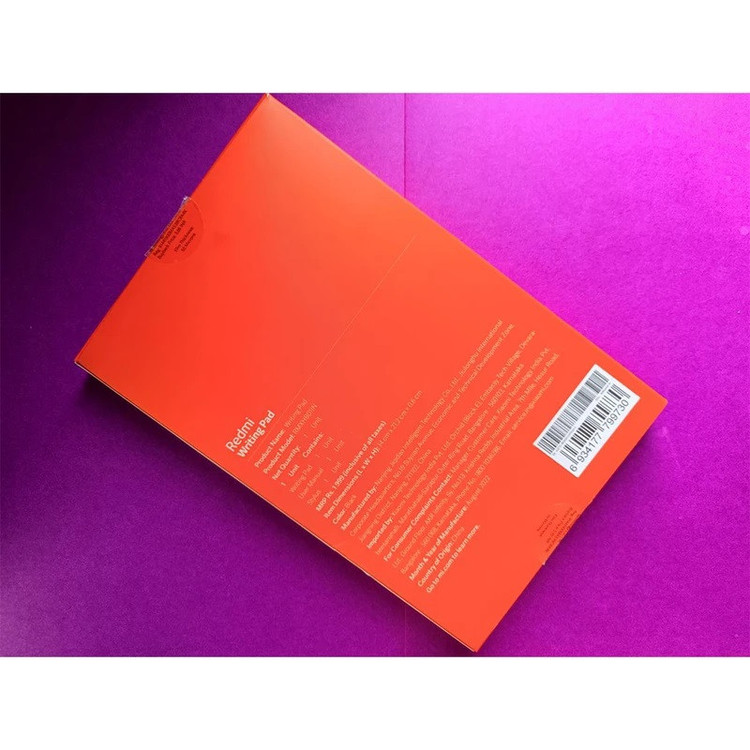 این دستگاه دارای یک LCD بزرگ 8.5 اینچی است که ظاهر جوهر روی کاغذ را تقلید می کند. این قلم با یک قلم حساس به فشار همراه است که می توان از آن برای نقاشی و نوشتن یادداشت استفاده کرد. این دستگاه پس از استفاده طولانی مدت از خستگی چشم جلوگیری می کند.یک قلم نوشتاری حساس به فشار در جعبه موجود است. با تغییر میزان فشار دادن هنگام نوشتن یا کشیدن، می توانید میزان ضخامت ضربه را تغییر دهید. کودکان می توانند به راحتی آن را حمل کنند و برای استفاده آنها مناسب است (وزن آن 90 گرم است). Writing Pad حداقل برای درجاتی از حساسیت فشار درجه بندی شده است، به طوری که کاربر می تواند سبک های مختلف را با همان قلم اجرا کند.پد تحریر در ابعاد 21×14×0.5 سانتی متر است. همراه با یک قلم برای یادداشت برداری و طراحی است که وزن آن فقط 5 گرم است، در حالی که تخته 90 گرم وزن دارد.این دستگاه برای تهیه نوت و نوشتن دیجیتالی عالی است. یک دکمه نارنجی کوچک در پایین صفحه را پاک می کند و به شما امکان می دهد یادداشت های جدیدی بگیرید. این پد همچنین حاوی یک حفره قلم در لبه سمت راست بالایی است.مانند اکثر پدهای نوشتاری دیجیتال، Redmi Pad دارای یک عملکرد قفل برای ثابت کردن اطلاعات صفحه نمایش است. وقتی کلید قفل روشن است، دکمه نارنجی نمی تواند متن را حذف کند.این دستگاه توسط یک باتری دکمه قابل تعویض CR2016 تغذیه می شود. این که می توانید تا 20000 صفحه را با یک بار شارژ بنویسید، ممکن است به راحتی جایگزین شود.لاوه بر این، Xiaomi 1 اعلام می کند که صفحه نمایش LCD آن نسبت به گوشی های هوشمند برای چشم ما ملایم تر است، که در نهایت می تواند منجر به خستگی صفحه نمایش شود زیرا آنها نور تولید می کنند، اما اینطور نیست. کودکان می توانند به راحتی آن را حمل کنند و برای استفاده آنها مناسب است (وزن آن 90 گرم است). با توجه به استفاده شیائومی از پلاستیک ABS برای بدنه، کاربران نیز نیازی به نگرانی در مورد کیفیت ساخت و طراحی آن ندارند.
