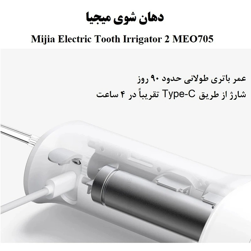 این مخزن قابل جابجایی است که تمیز کردن آن را آسان میکند. باتری لیتیومی 2200 میلیآمپر ساعتی دستگاه با یک بار شارژ میتواند تا 45 روز کار کند، که این ویژگی به خصوص در سفرها بسیار کاربردی است. شارژ دستگاه از طریق پورت نوع C انجام میشود و مدت زمان لازم برای شارژ کامل آن 4 ساعت است. در نهایت، دستگاه شست و شوی دهان و دندان Mijia MEO701 یک ابزار کامل و کارآمد برای حفظ بهداشت دهان و دندان است که با ویژگیهای منحصر به فرد خود، از جمله حالتهای متنوع، نازلهای قابل تعویض، مخزن آب مناسب، و مقاومت در برابر آب، به یکی از بهترین انتخابها در این دستهبندی تبدیل شده است. این دستگاه نه تنها به طور موثر از مشکلات دهان و دندان مانند پوسیدگی و التهاب لثه پیشگیری میکند، بلکه استفاده از آن نیز آسان و لذتبخش است.