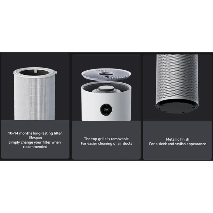 حذف بو: دارد- متراژ قابل پشتیبانی: 125 متر مربع- فیلتراسیون سه در یک:حذف 99.98 درصد ذرات 0.3μm - پشتیبانی از اپلیکیشن: Xiaomi Home app + AI voice - میزان صدا: بسیار پایین - نظارت جامع بر کیفیت هوا: دارد- UV-C LED:دارد