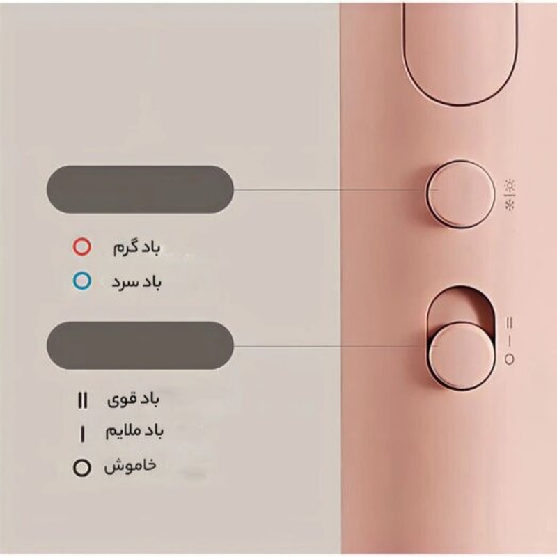 البته باد و دمای این سشوار قابلیت تنظیم دارند و هر یک در دو مود تنظیم میشوند؛ در واقع با یک لمس ساده میتوانید به دو دما و دو سطح سرعت باد دست پیدا کنید. اگر قصد حالت دادن و خشک کردن مو را داشته باشید، باید دمای باد را روی گرم تنظیم نمایید و برای تثبیت حالت موها، باد خنک بهترین گزینه است. همه این تغییرات از طریق دکمههای فیزیکی روی دسته انجامشدنی هستند.
